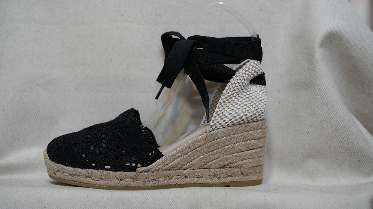 BLACK OPENWORK VALENCIANA ANKLE-TIED